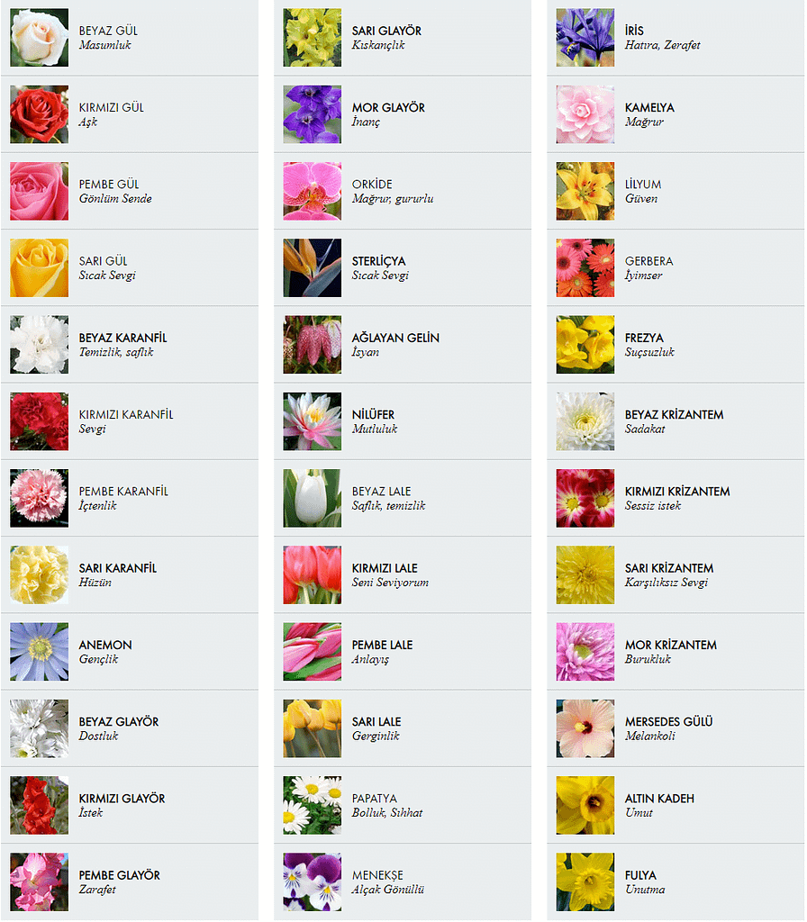 İnsanlar gibi çiçeklerin de kendine özgü bir karakteri ve dili vardır. Çiçeklerin anlamı ve verdiği mesajlar da genelde türlerine göre farklılık gösterir. Bazı çiçeklerin anlamları ve hikayeleri efsaneler ile ilişkilendirilirken bazı çiçek isimleri ve anlamları halk arasından anonim özdeyişlerle günümüze kadar gelmiş ve öyle kabul edilmiştir. Kendi tarihimizden örnek verecek olursak Osmanlı’da çiçeklerin anlamı üzerine yazılı kayıtların olduğu ve bunların bir kısmının günümüze kadar ulaştığı bilinmektedir.
