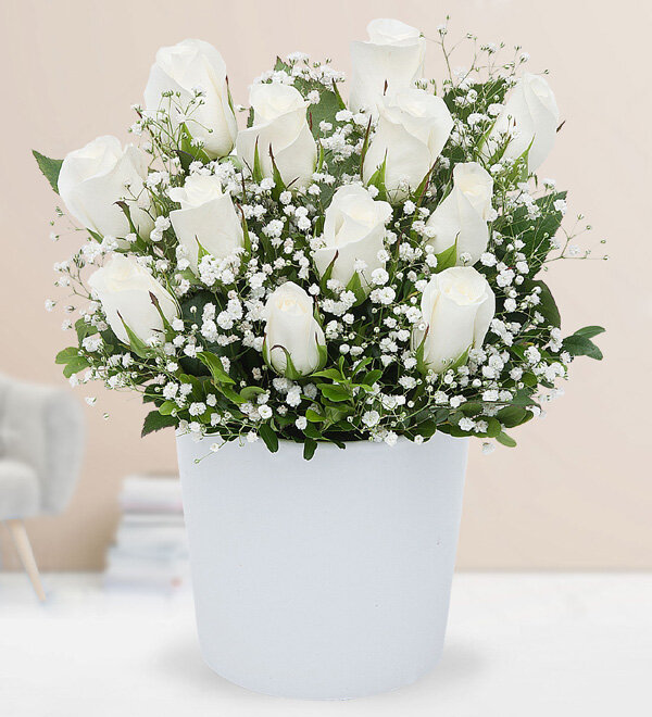 15 beyaz gül vazo