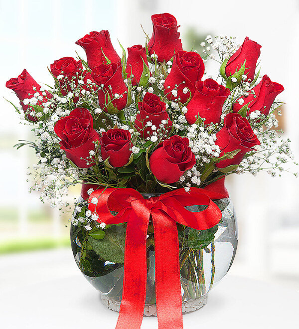 15 kırmızı gül fanus