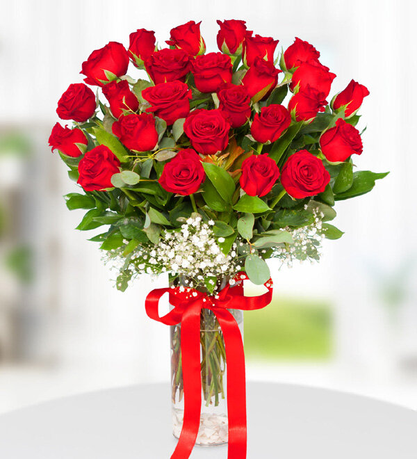 25 kırmızı gül vazo