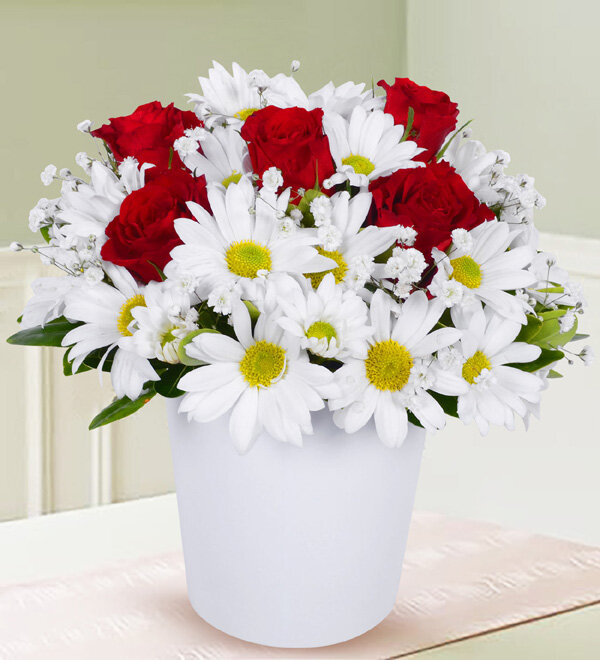 • 5 kırmızı gül beyaz papatya seramik ⁄