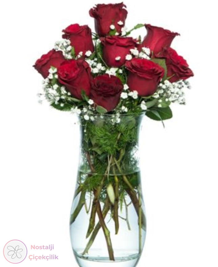 • Vazoda 9’lu Kırmızı Gül ⁄